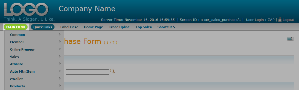 Click on Main Menu button .